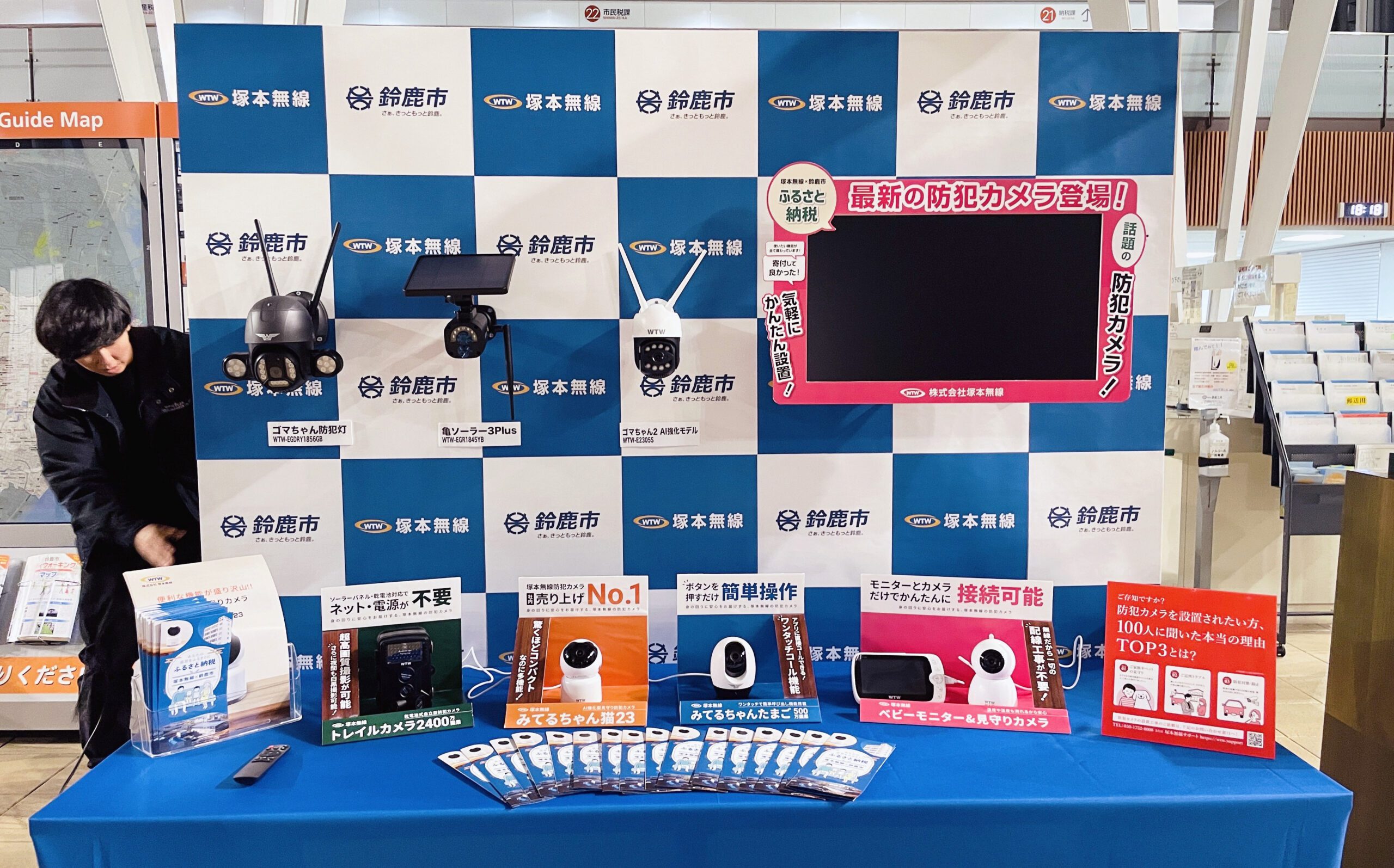 売り上げNo.1の見守りカメラ”みてるちゃん猫23”をはじめ、ベビーモニターやソーラーカメラ、トレイルカメラなど計8種の展示を行い、ふるさと納税や自社製品の魅力をご来場の皆様にお伝えいたしました。