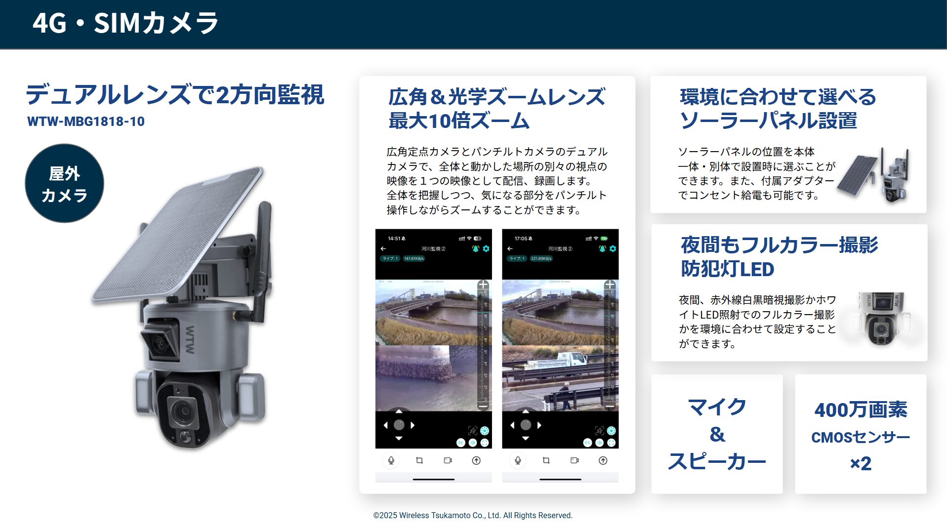 光学4倍PTZレンズと固定レンズの400万画素デュアルカメラ